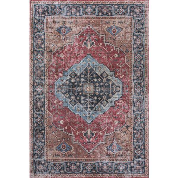 Alacati Ogee Medallion Machine-Washable Red/Blue/Brown 4 ft. x 6 ft. Area Rug