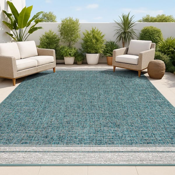 Alda Modern Minimalist Mingled Solid Turquoise/Cream 8 ft. x 10 ft. Indoor/Outdoor Area Rug