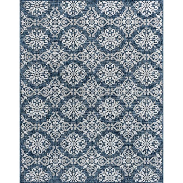 Amora Traditional Mediterranean Tile Design Navy/Cream 8 ft. x 10 ft. Indoor/Outdoor Area Rug