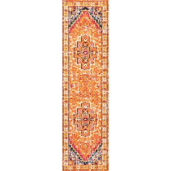 Brooklyn Geometric Medallion Orange/Blue 2 ft. x 8 ft. Runner Rug