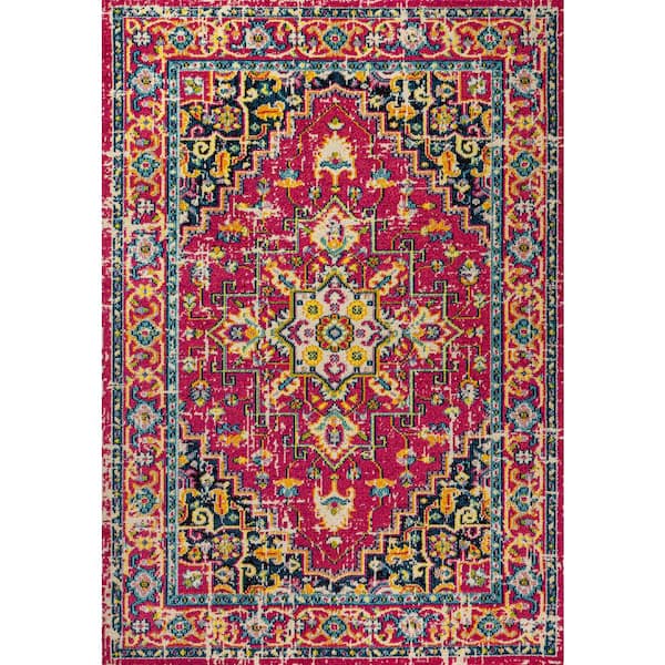 Brooklyn Red/Pink 5 ft. x 8 ft. Geometric Medallion Area Rug