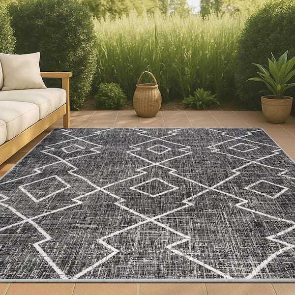 Carwa Tribal Diamond Trellis Black/Ivory 4 ft. x 6 ft. Indoor/Outdoor Area Rug