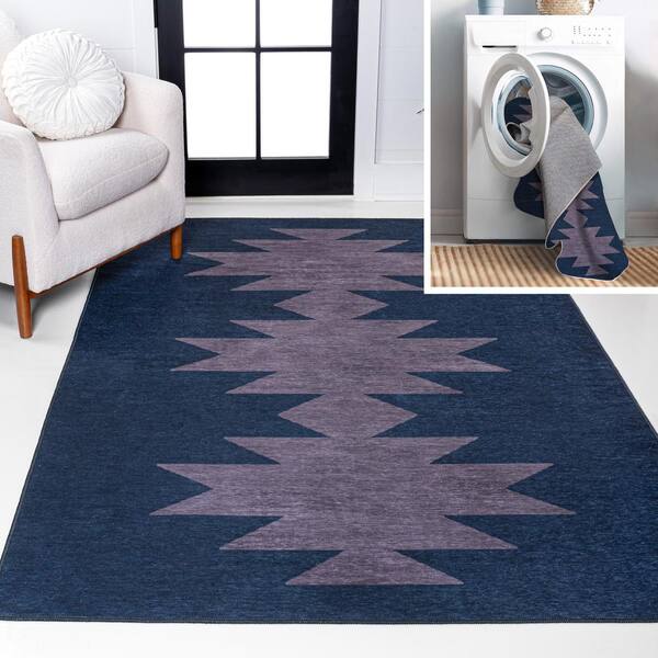 Chayton Minimalist Geometric Machine-Washable Navy/Purple 9 ft. x 12 ft. Area Rug