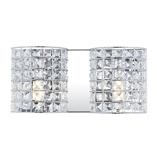 Clara Deco 15 in. 2-Light Metal/Crystal Classic Glam LED Vanity Light, Chrome