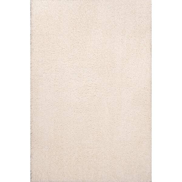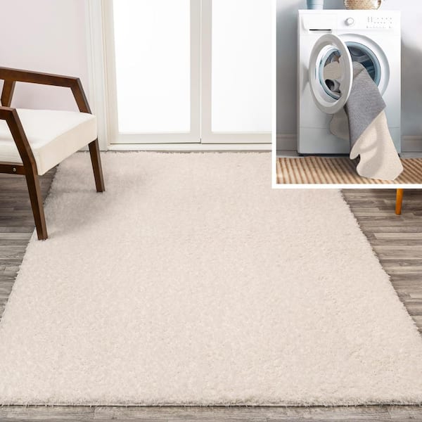 Clayton Coastal White 4 ft. x 6 ft. Solid Glam Shag Machine-Washable Area Rug