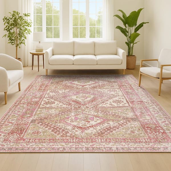Darija Ornate Geometric Medallion Pink 7 ft. 9 in. x 10 ft. Area Rug