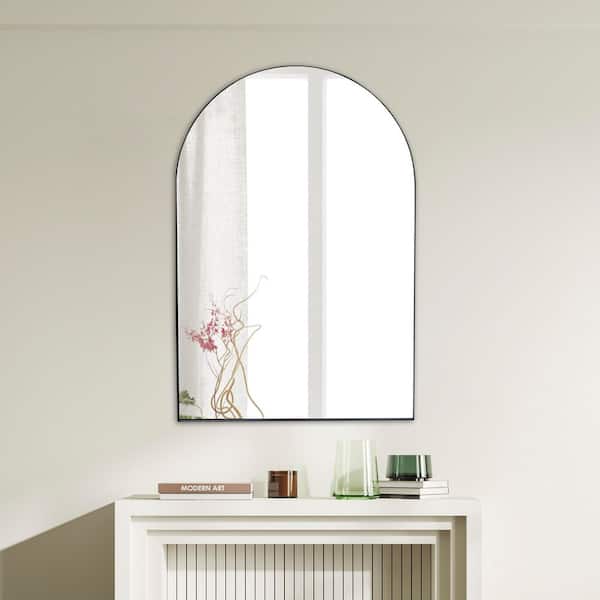 Elodie 24 in. W x 36 in. H Medium Arched Metal Framed Wall Mounted Mirror, Black