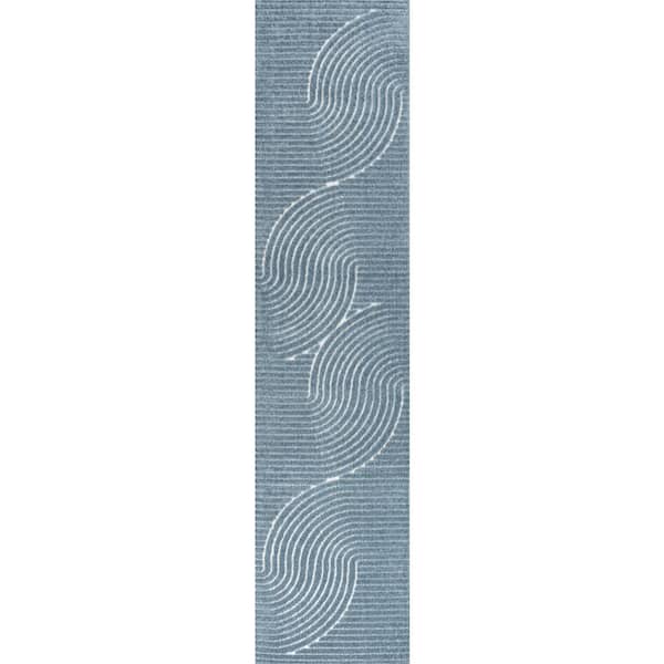 Hallie High-Low Minimalist Curve Geometric Dark Blue/Cream 2 ft. x 8 ft. Indoor/Outdoor Runner Rug