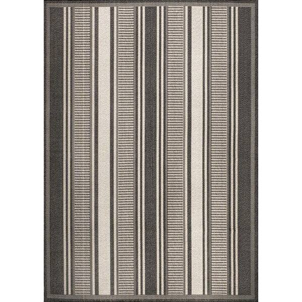 Haynes Modern Black/Cream 5 ft. x 8 ft. Double Stripe Indoor/Outdoor Area Rug
