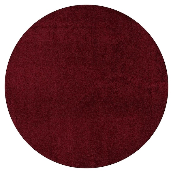 Haze Solid Low-Pile Dark Red 4 ft. Round Area Rug