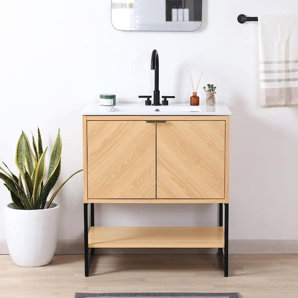 Juhl 30 in. W x 18 in. D x 33 in. H Chevron-Front Modern Minimalist 2-Shelf Bath Vanity Cabinet without Top in Oak