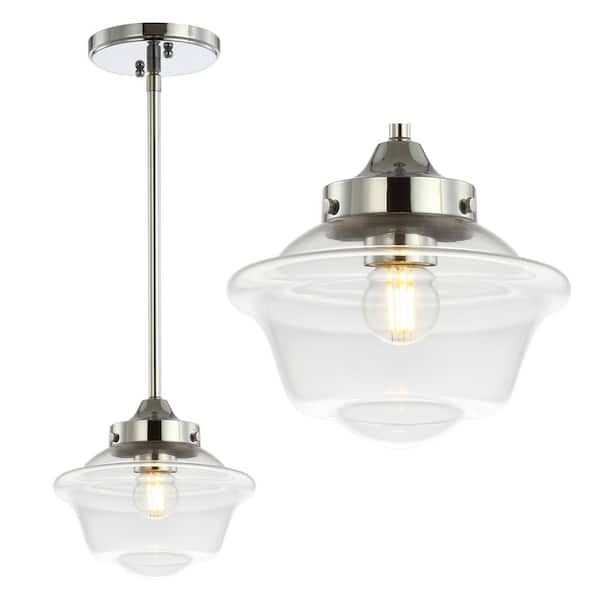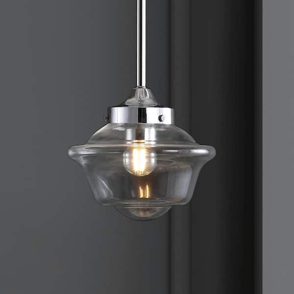 Kurtz 7.25 in. 1-Light Chrome LED Pendant with Adjustable Drop Metal/Glass