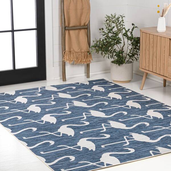 Liana Casual Coastal Flamingos 2-Tone Navy/White 8 ft. x 10 ft. Indoor/Outdoor Area Rug