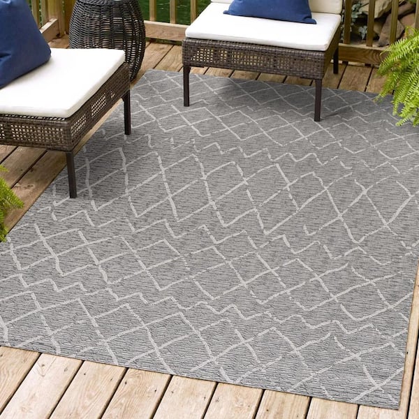 Madaba Gray/Cream 8 ft. x 10 ft. Moroccan Trellis Indoor/Outdoor Area Rug