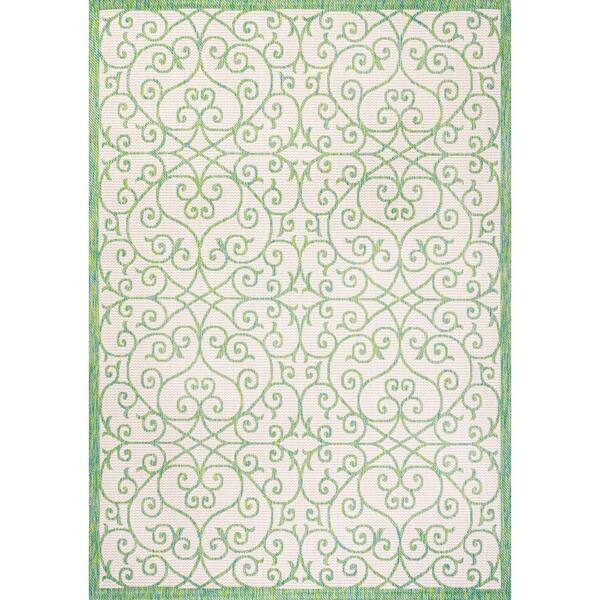 Madrid Vintage Filigree Textured Weave Cream/Green 5 ft. x 8 ft. Indoor/Outdoor Area Rug