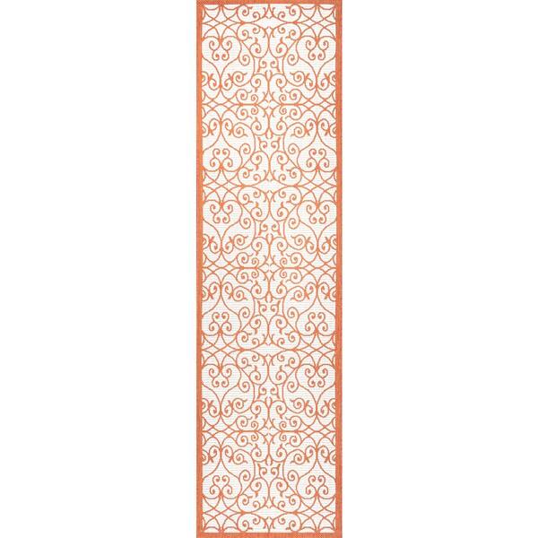 Madrid Vintage Filigree Textured Weave Cream/Orange 2 ft. x 8 ft. Indoor/Outdoor Area Rug