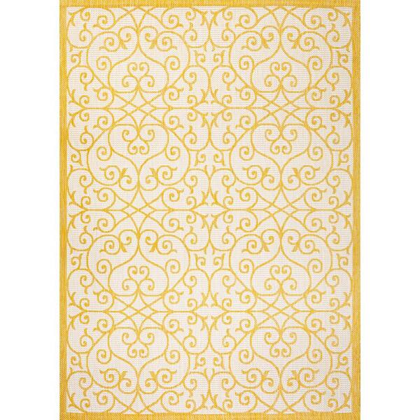 Madrid Vintage Filigree Textured Weave Cream/Yellow 5 ft. x 8 ft. Indoor/Outdoor Area Rug