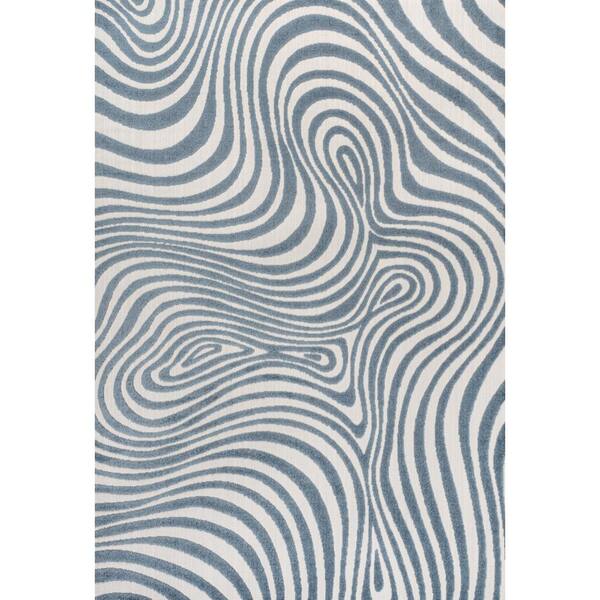 Maribo High-Low Abstract Groovy Striped Dark Blue/Cream 3 ft. x 5 ft. Indoor/Outdoor Area Rug
