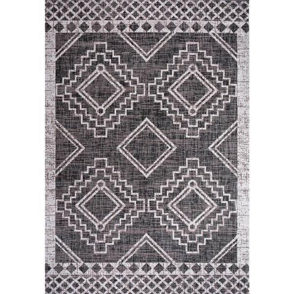 Marokko Black/Ivory 5 ft. x 8 ft. Diamond Tribal Medallion Indoor/Outdoor Area Rug