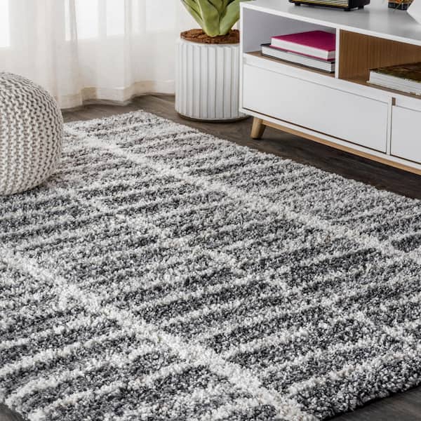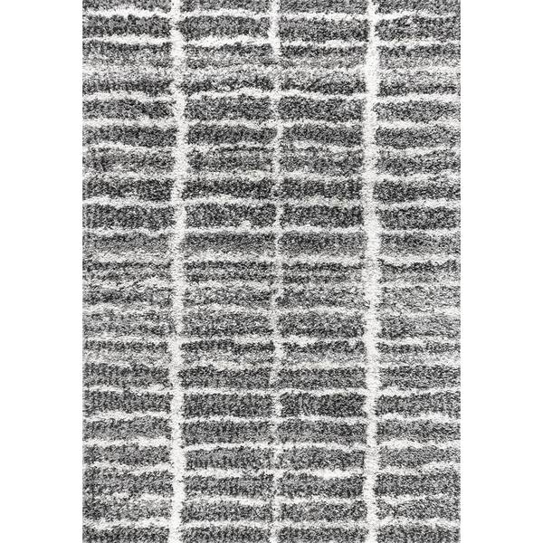 Merida Stacked Grid Shag Grey/Ivory 7 ft. 9 in. x 10 ft. Area Rug