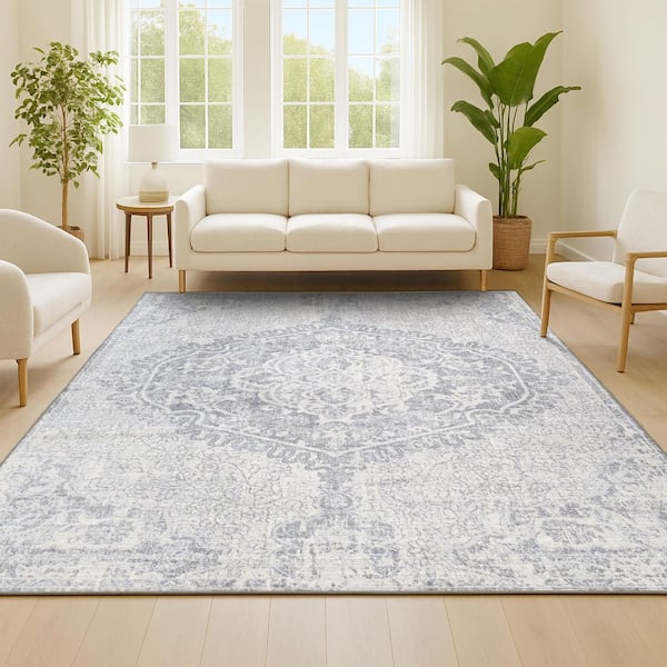 Modern Gray/Ivory 4 ft. x 6 ft. Persian Vintage Medallion Area Rug