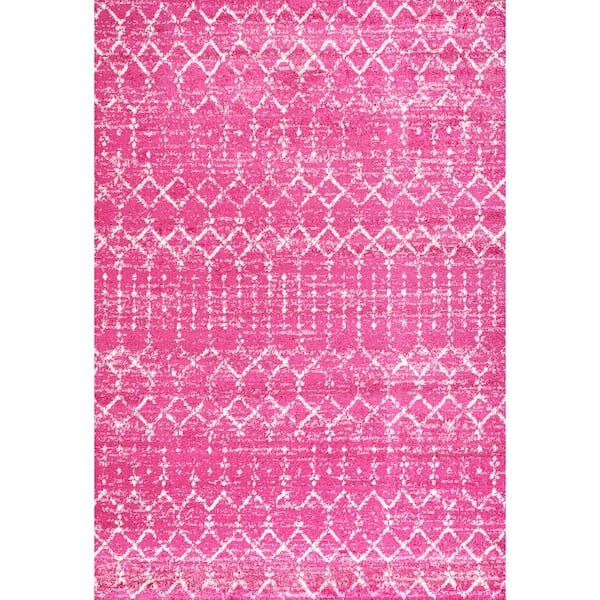 Moroccan HYPE Boho Vintage Diamond Fuchsia/Ivory 3 ft. x 5 ft. Area Rug