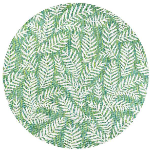 Nevis Palm Frond Cream/Green 5 ft. Round Indoor/Outdoor Area Rug