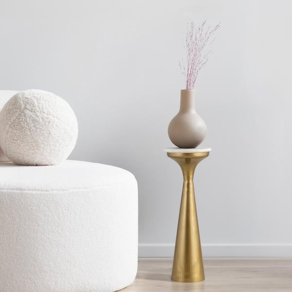 Oliver 22.25 in. Mid-Century Glam Retro Metal Drink Table with Marble Top, Gold/White