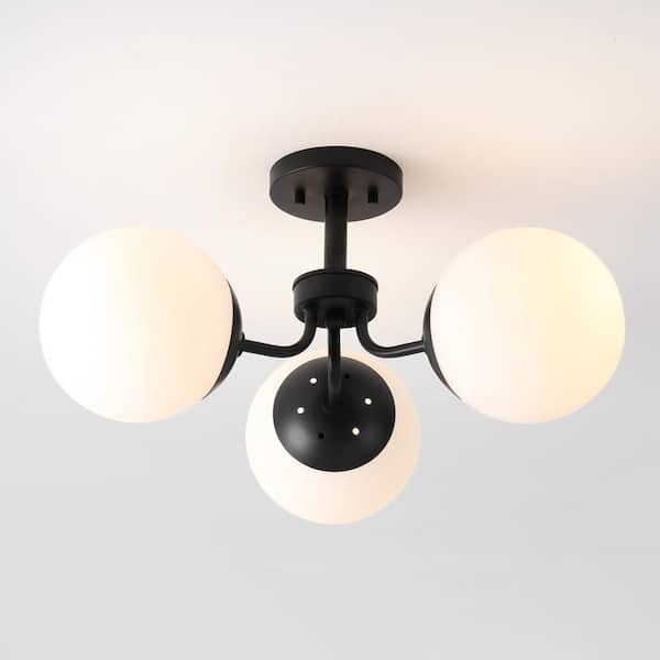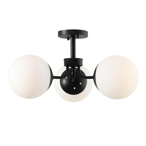 Olivier 23.5 in. 3-Light Bohemian Farmhouse Iron/Frosted Glass LED Semi Flush Mount, Black