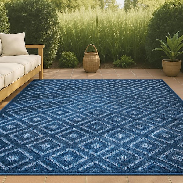 Portmany Neutral Diamond Trellis Navy 5 ft. x 8 ft. Indoor/Outdoor Area Rug
