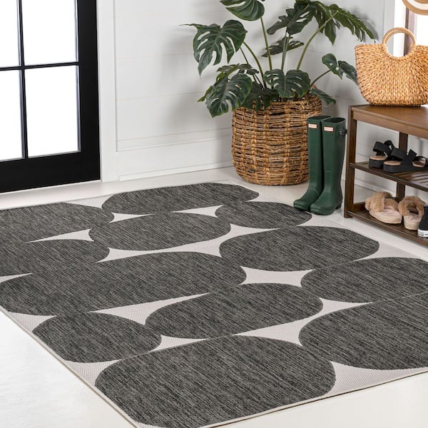 Rayna Modern Geometric Organic Shapes Black/Cream 8 ft. x 10 ft. Indoor/Outdoor Area Rug