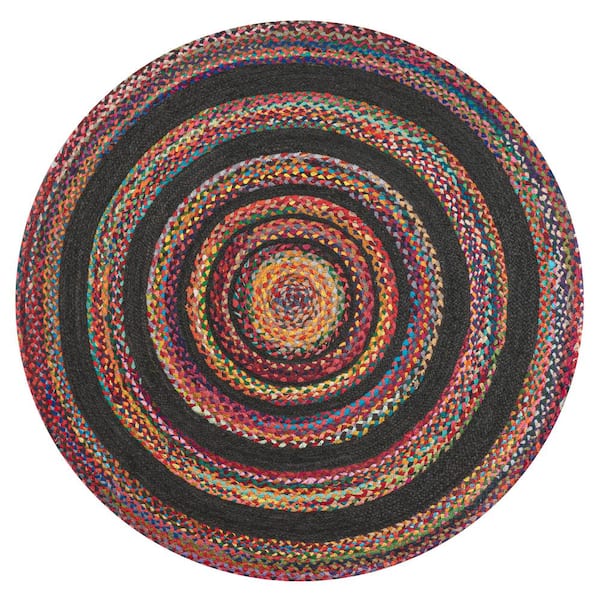 Red/Multi 6 ft. Round Abyss Braided Bohemian Coastal Round Jute Area Rug