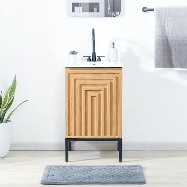 Rowan 20 in. W x 18 in. D x 33 in. H Geometric Modern Transitional 2-Shelf Bath Vanity Cabinet without Top in Oak