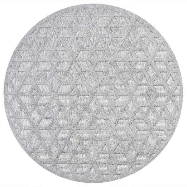 Talaia Neutral Light Gray 5 ft. Round Geometric Indoor/Outdoor Area Rug