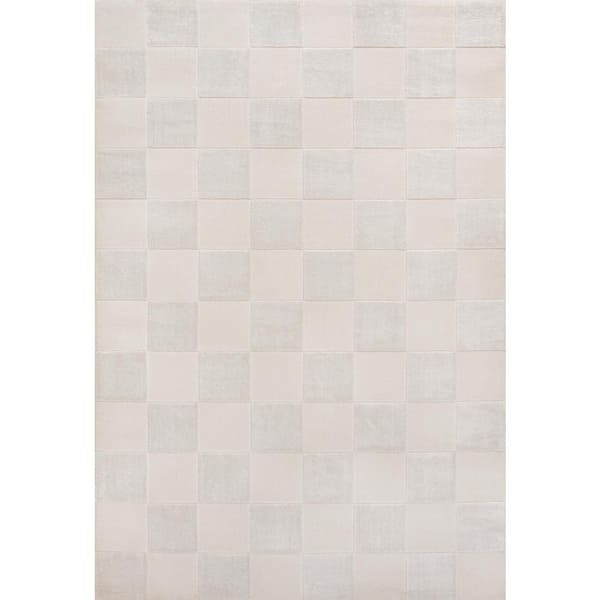 Thea Modern Geometric Checkerboard High-Low White/Cream 5 ft. x 8 ft. Area Rug