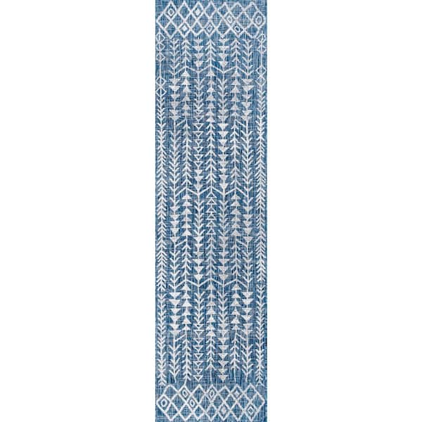 Tokay Bohemian Geometric Blue/Ivory 2 ft. x 8 ft. Indoor/Outdoor Area Rug