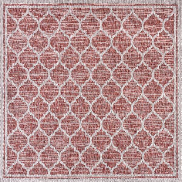 Trebol Moroccan Trellis Textured Weave Red/Beige 8 ft. x 8 ft. Indoor/Outdoor Area Rug