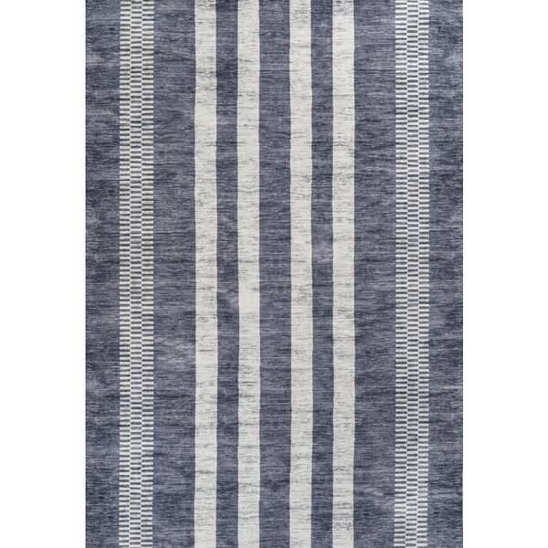 Vichy Gray/Ivory 9 ft. x 12 ft. Geometric Striped Machine-Washable SlateArea Rug