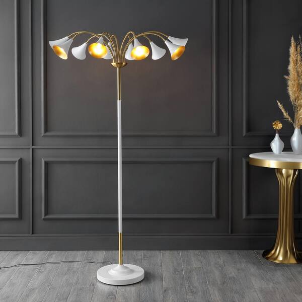 Vivian 61 in. Brass Gold/White 10-Light Mid-Century Modern Iron Medusa Multi Head Standard Tree LED Floor Lamp