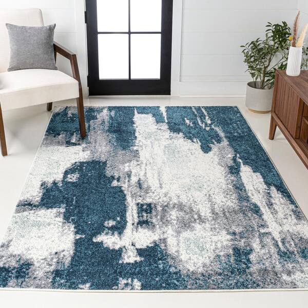 Zoe Contemporary Bohemian Abstract Marble Navy/White 3 ft. x 5 ft. Area Rug