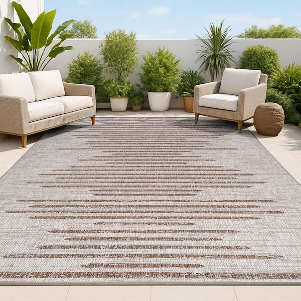 Zolak Berber Stripe Geometric Beige/Brown 5 ft. x 8 ft. Indoor/Outdoor Area Rug