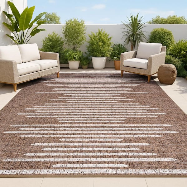 Zolak Berber Stripe Geometric Brown/Beige 8 ft. x 10 ft. Indoor/Outdoor Area Rug