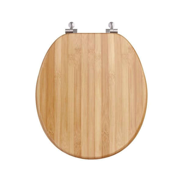 Premium Wood Round Toilet Seat with Cover and Brushed Nickel Hinge in Rattan