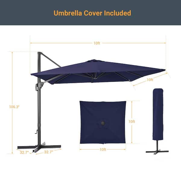 10 ft. Aluminum Cantilever Patio Umbrella High-Quality Solution-Dyed Fabric 360° Rotation System in Navy Blue