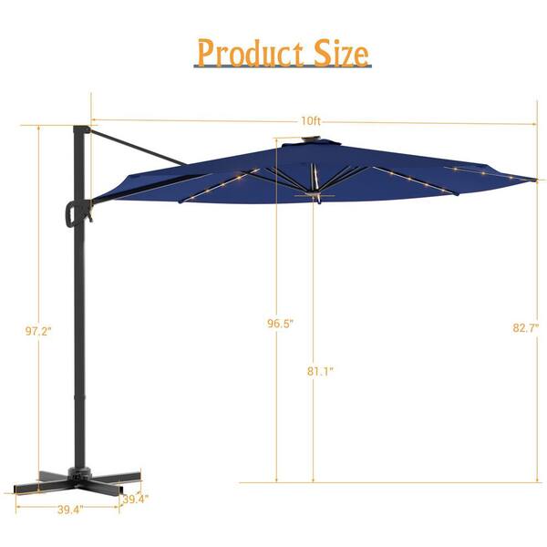 10 ft. LED Round Cantilever Umbrella Solution-Dyed Fabric, Metal Frame and Innovative 360° Rotation System in Navy Blue