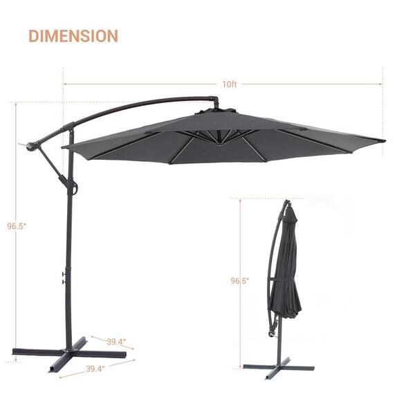 10 ft. Outdoor Patio Umbrella, Round Canopy Cantilever Umbrella for Villa Gardens, Lawns and Yard, Anthracite