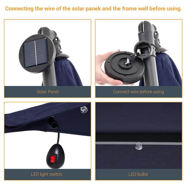 10 ft. Patio Offset Solar LED Umbrellas 50 Plus UV Protection Cantilever Outside Umbrellas, Navy Blue