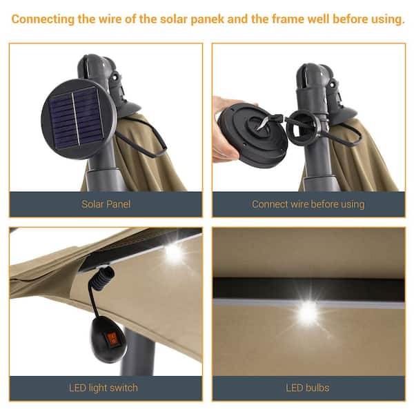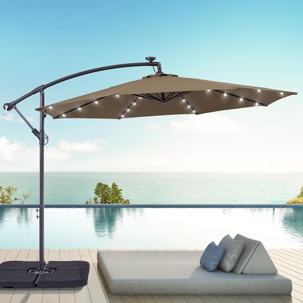 10 ft. Patio Offset Solar LED Umbrellas 50 Plus UV Protection Cantilever Outside Umbrellas, Taupe