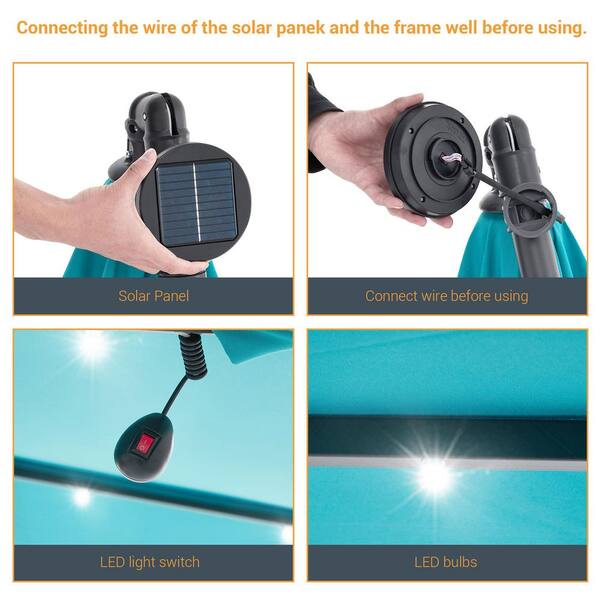 10 ft. Patio Offset Solar LED Umbrellas 50 Plus UV Protection Cantilever Outside Umbrellas, Turquoise