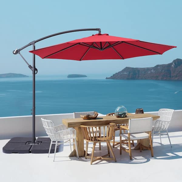 10 ft. Patio Offset Umbrellas 50 Plus UV Protection Cantilever Outside Umbrellas, Red